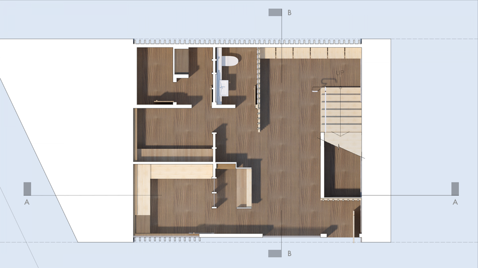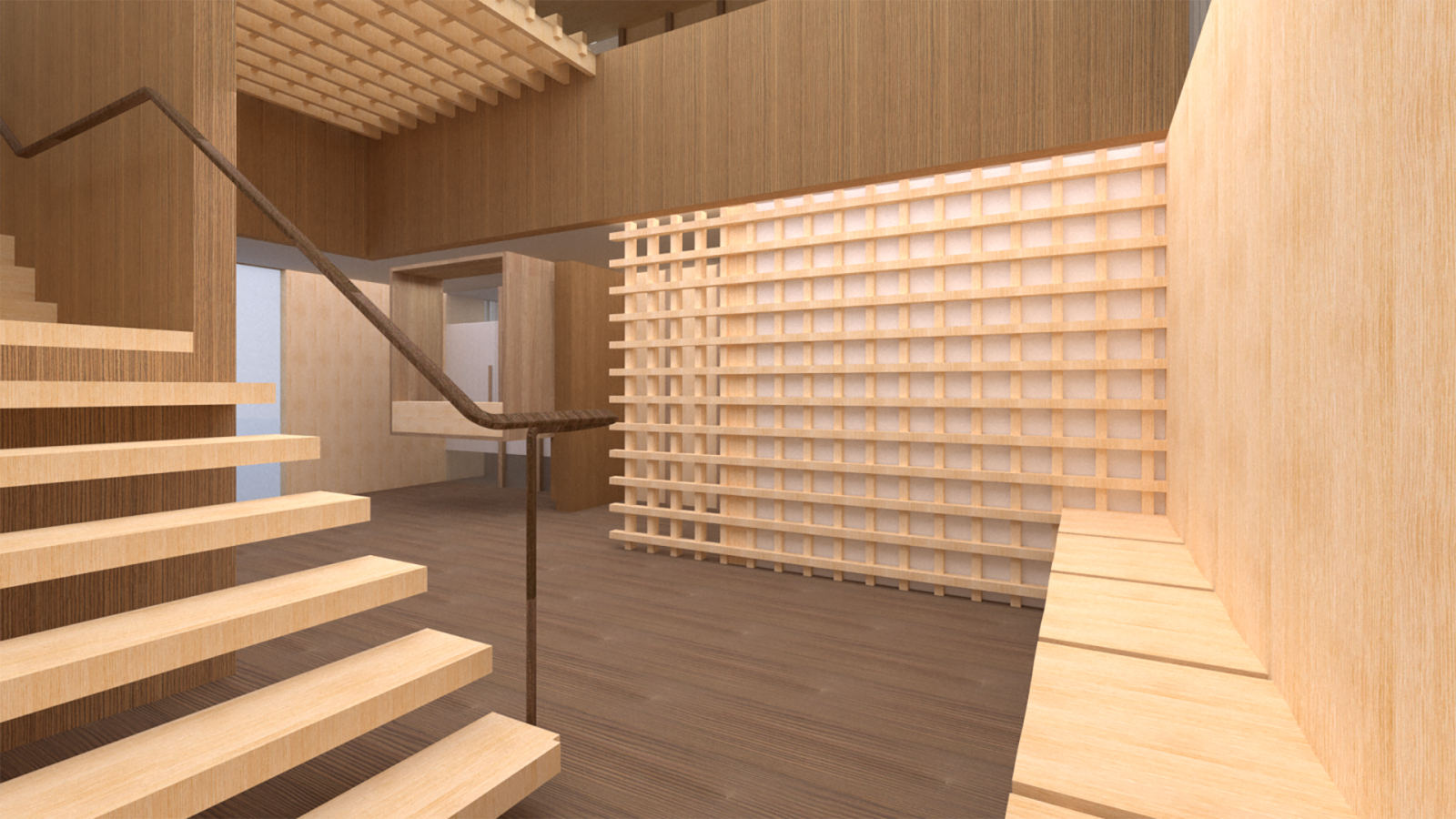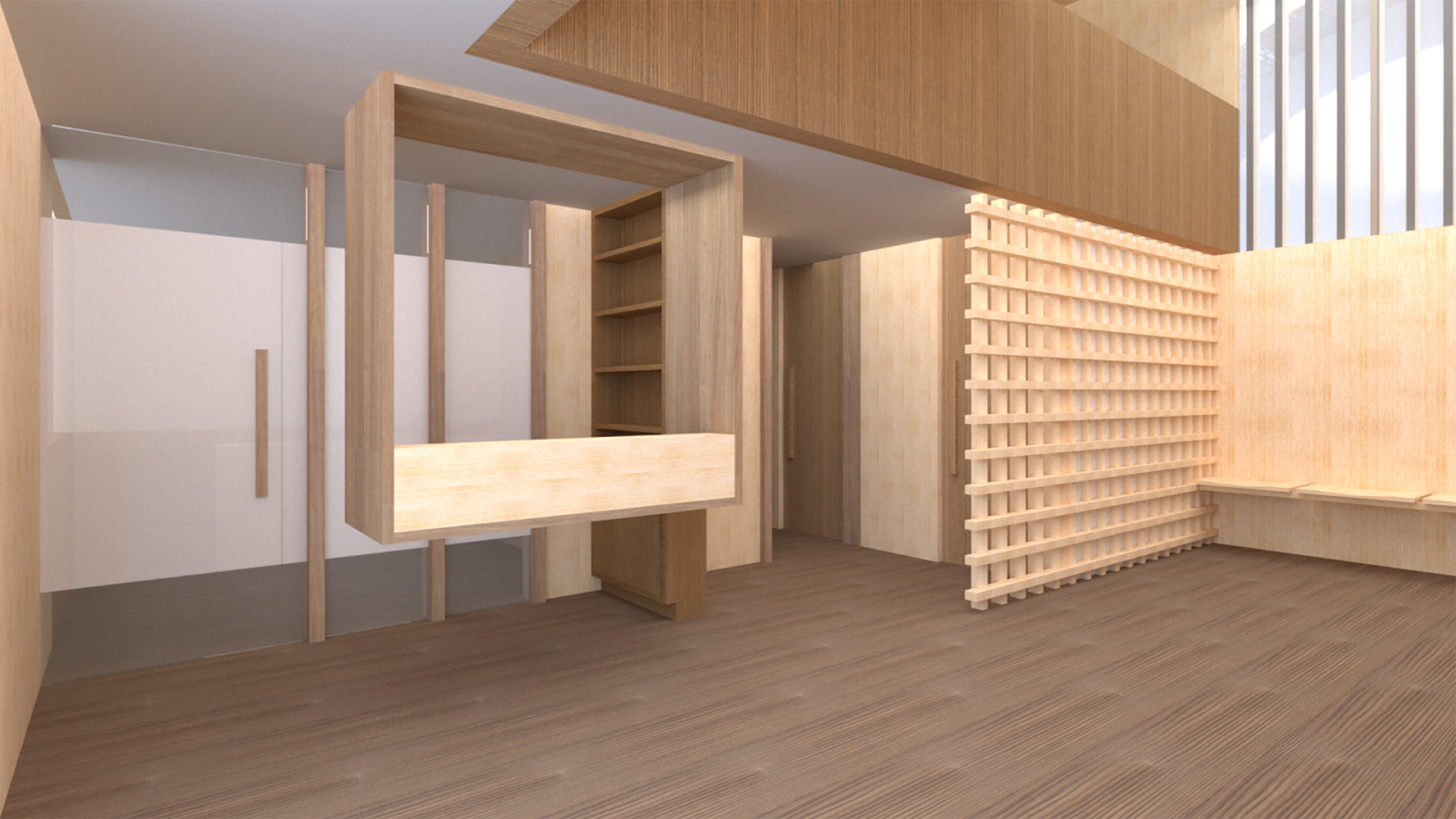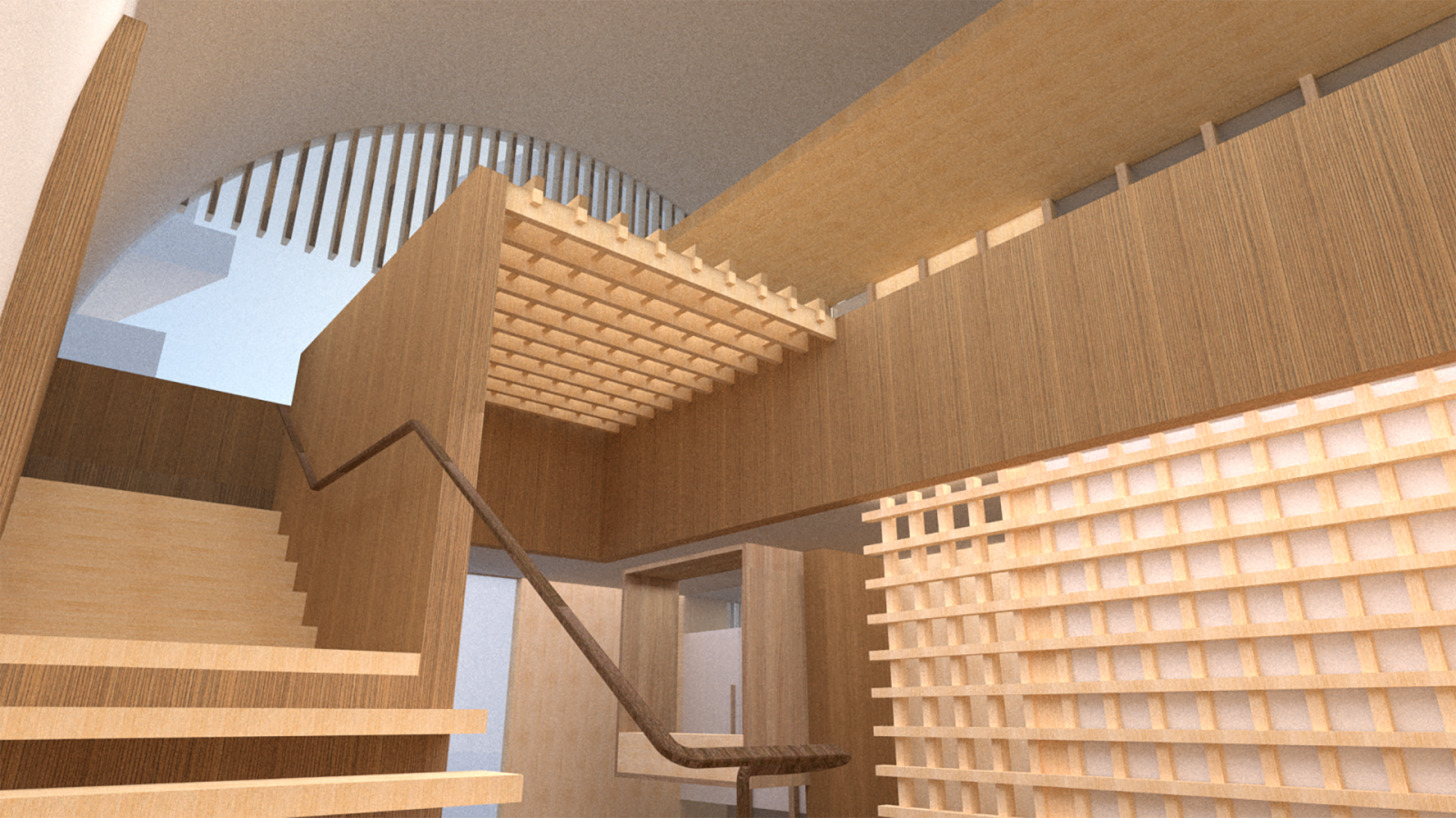This interior proposal’s main objectives are to address issues that are often to be found in NHS dental practices including; poor circulation / spatial adjacencies, rather cluttered environments and an institutional ambience. When brought together these things do little to put patients at ease in a place where people are often anxious. In response to this the interior aims to create an environment that is systematic, clean and tidy whilst also providing comfort and warmth for the user. To achieve this the existing arch has been given a clean white lining before a beautifully crafted timber interior has been installed within the double height volume. Ash, American oak, teak and dark walnut timbers are used to create a quality interior in which both the smell and acoustic quality of the wood will delight the senses and help instill a feeling of calm on the building’s users. Vertical timber louvers help to introduce, control and modulate natural light to further enhance a feeling of wellbeing within the space. A clean modern aesthetic contributes to establishing an interior that is efficient and organised but also accessible and friendly.