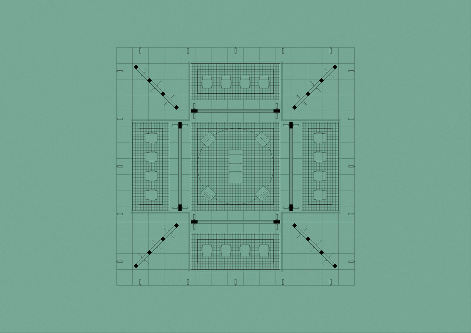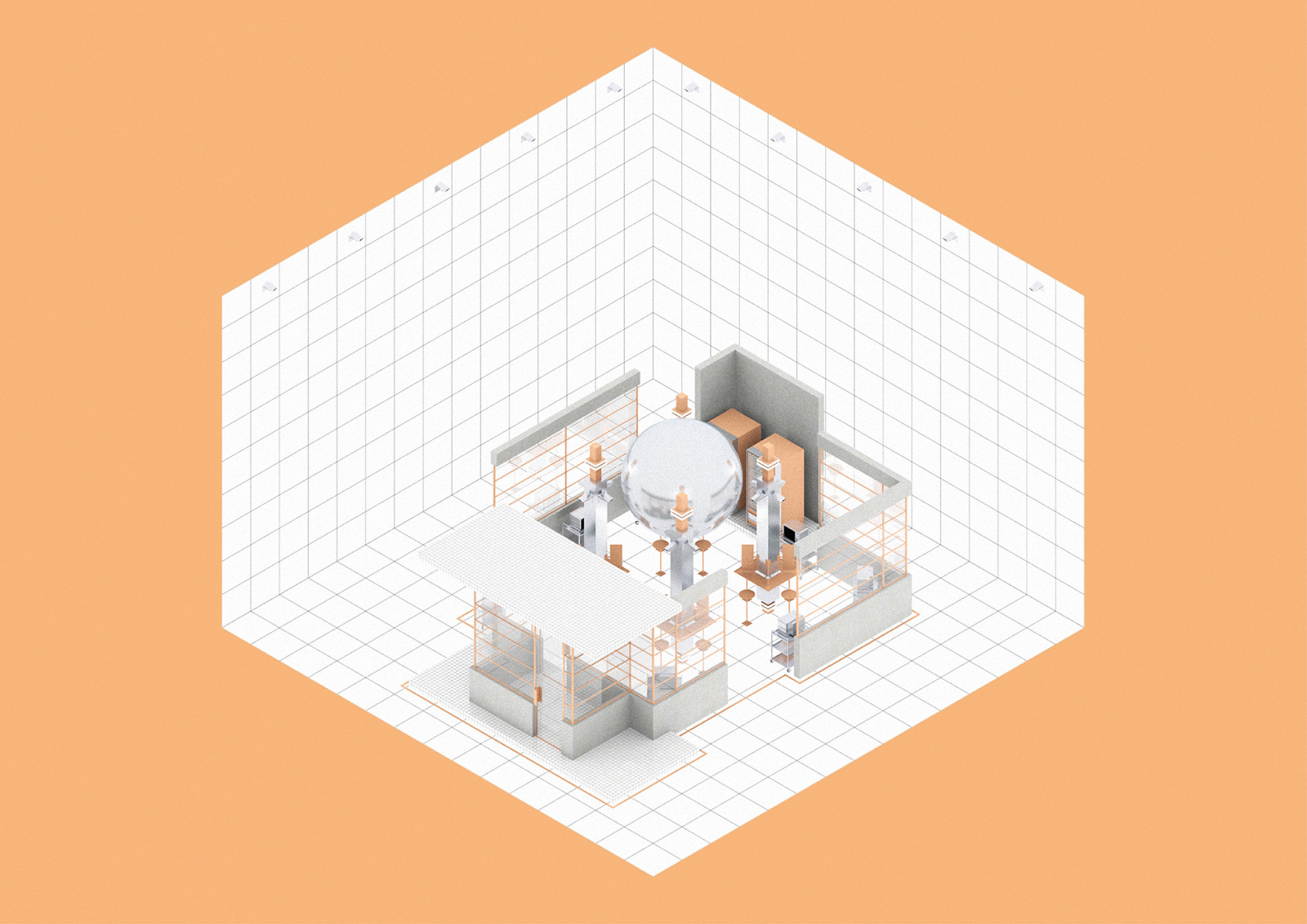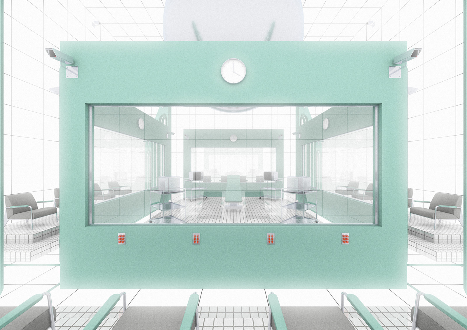 Analysis of these themes along with the settings, symbols and motifs explored in the novel create scenes and viewpoints of the narrative which are used to give a physicality to these ideas. Collating this analysis with research on visual languages of precedent set design manifested the creation of a new direction of narrative display, taking the form of a hyper stylised visual language. This has been used to design six environments that reference the themes and display the narrative of 1984. All six environments occupy the same area size and are contained within a grid structure that acts as a film production studio, taking the directorial perspective from the lens of security cameras.