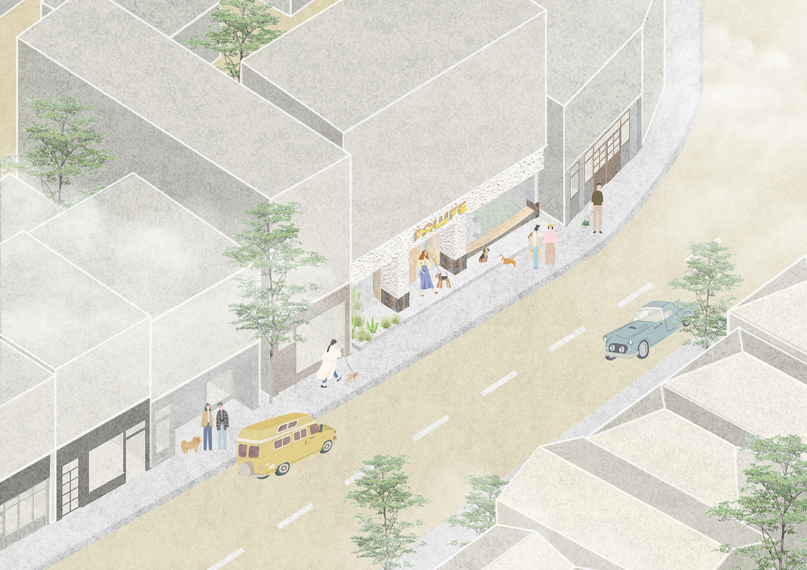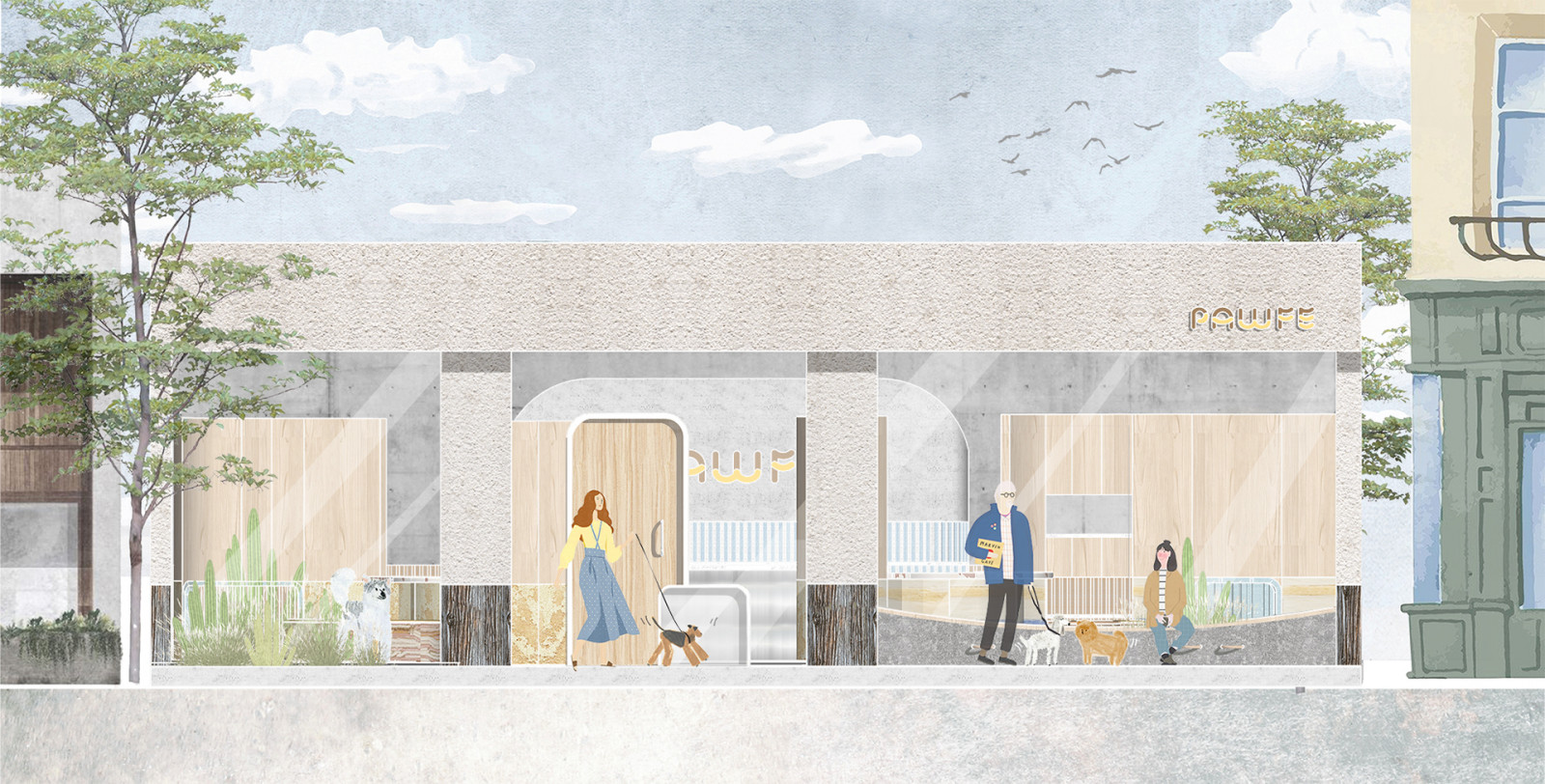 Pawfee is a model for an urban café for dogs and their owners. It is an attempt to harness the sense of community and casual friendships found amongst dog-owners. It is a place for those who can’t access a park, or those who would rather sit down with a flat-white than walk around a flat-green.