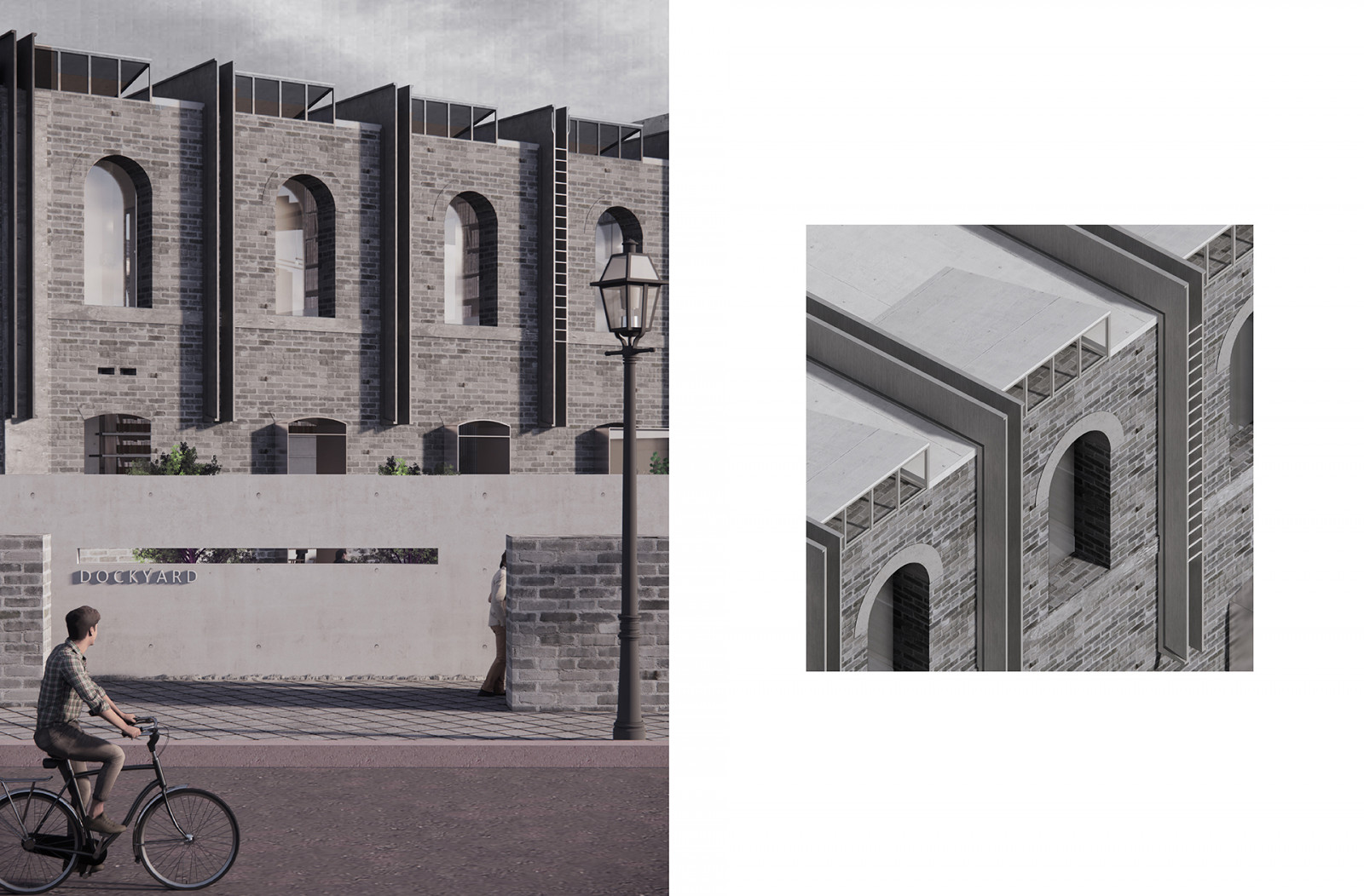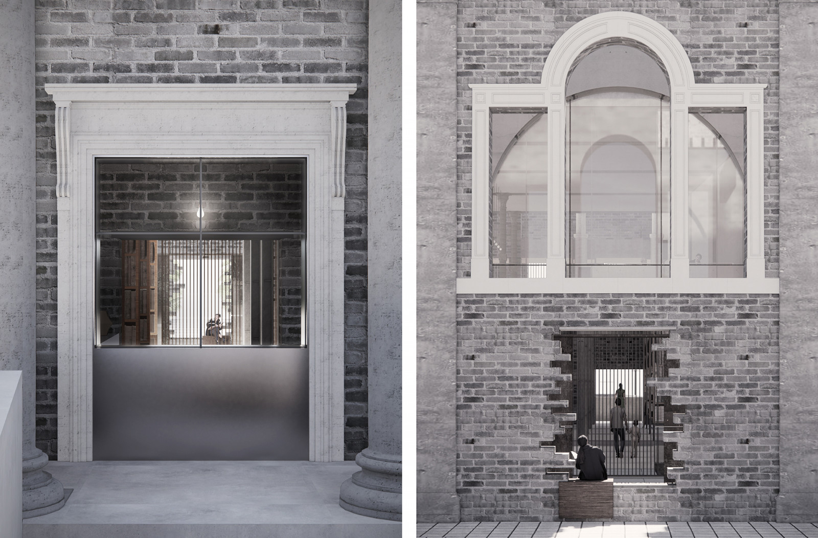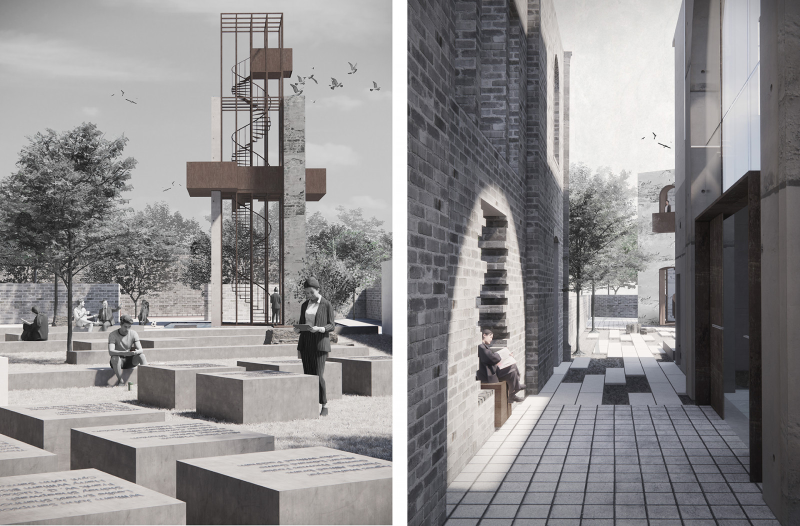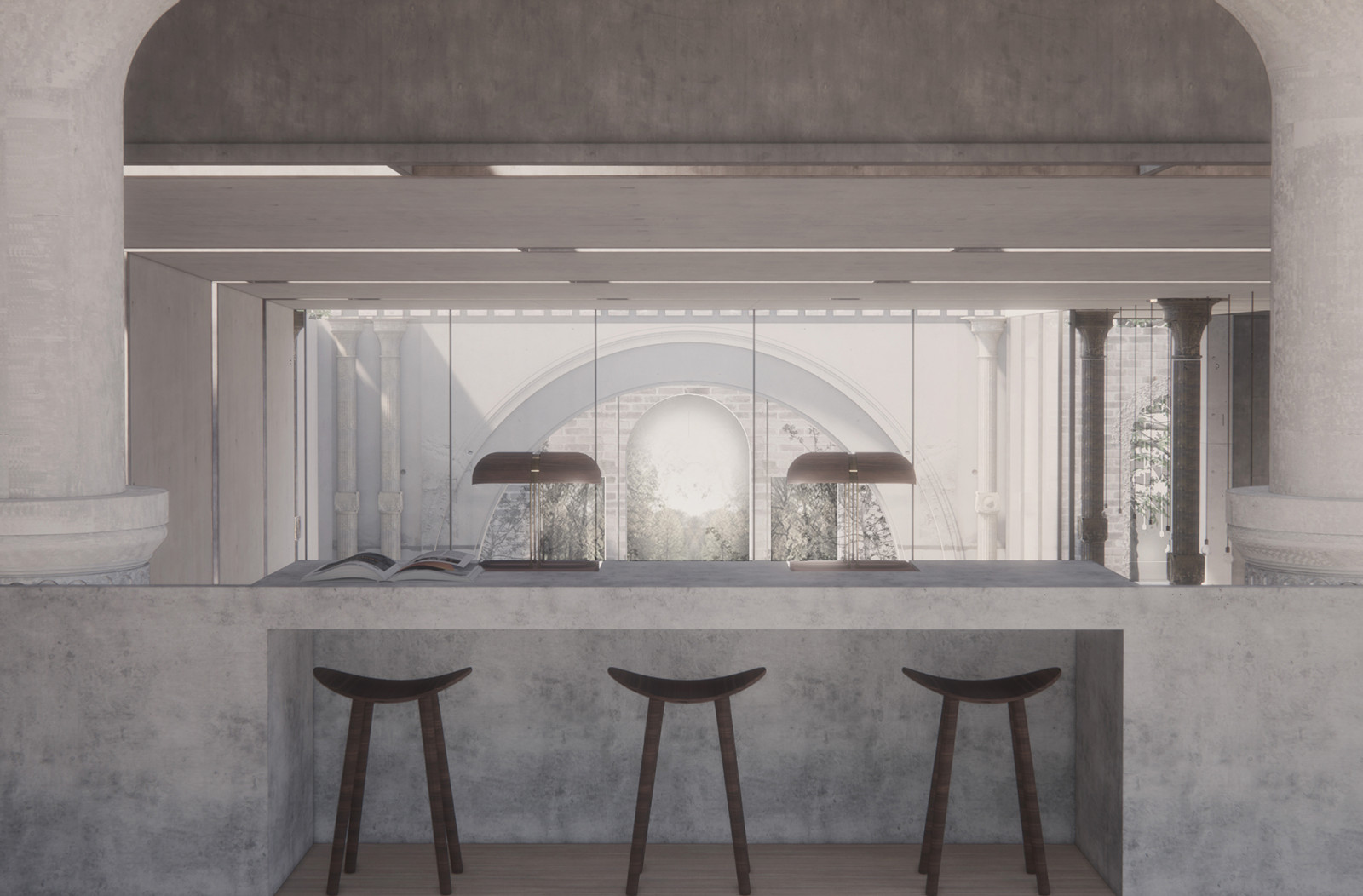 This journey leads to the first and most dramatic intervention into the building; a direct path that shears off the terrace-edge of the church and creates a new route through the side of the archive. This ambiguous space, neither inside nor out, does three things; it connects the memorial directly to the building and an old forgotten path to the docks, which will be reopened with this project. It exposes the old structure of the building; a symbol of its past and future. And, it creates a new connection to the garden, accessed once the corner is turned and the visitor moves towards the sea. From this point visitors enter the archive and can participate in a quiet, industrious space, where they can look up family-trees, read books, and immerse themselves in the peoples histories.