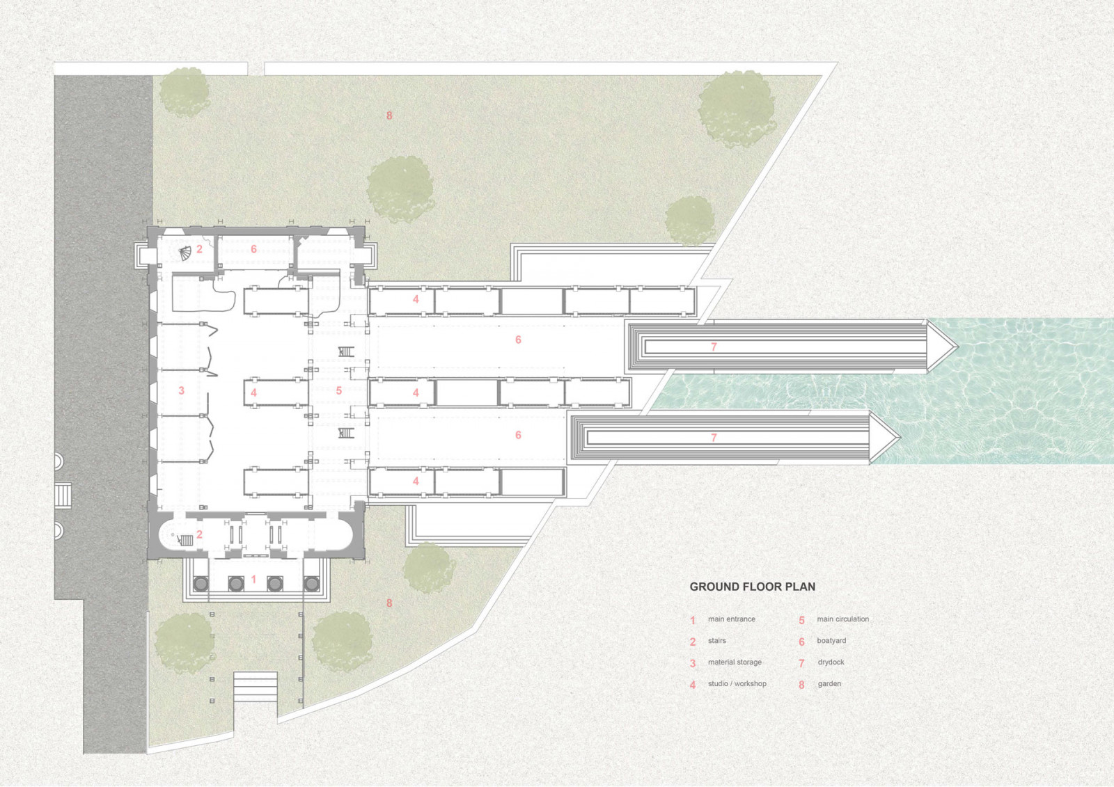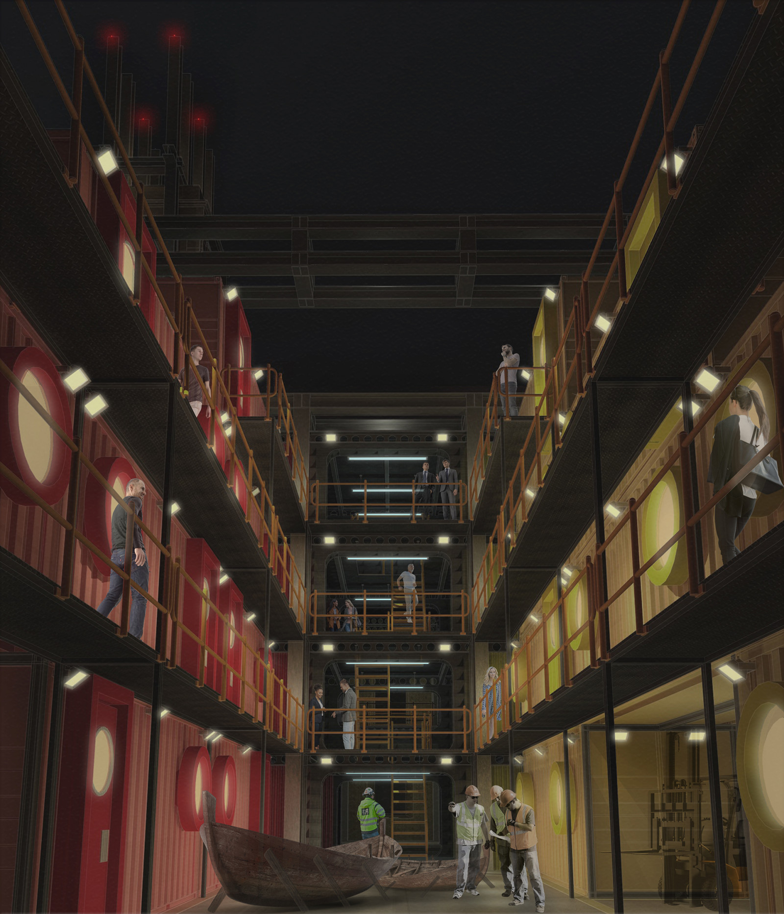 To reinforce this connection, the church will become a makerspace. A place where various professions, local to Sheppey, will work alongside each other in order to promote the local economy. Boat yards that build and repair traditional boats as commemoration of what the dockyard had existed for, are placed alongside new makers; connecting to the old, in new workshops and studios. The new programme connects the local economy whilst commemorating the history of the royal dockyard.