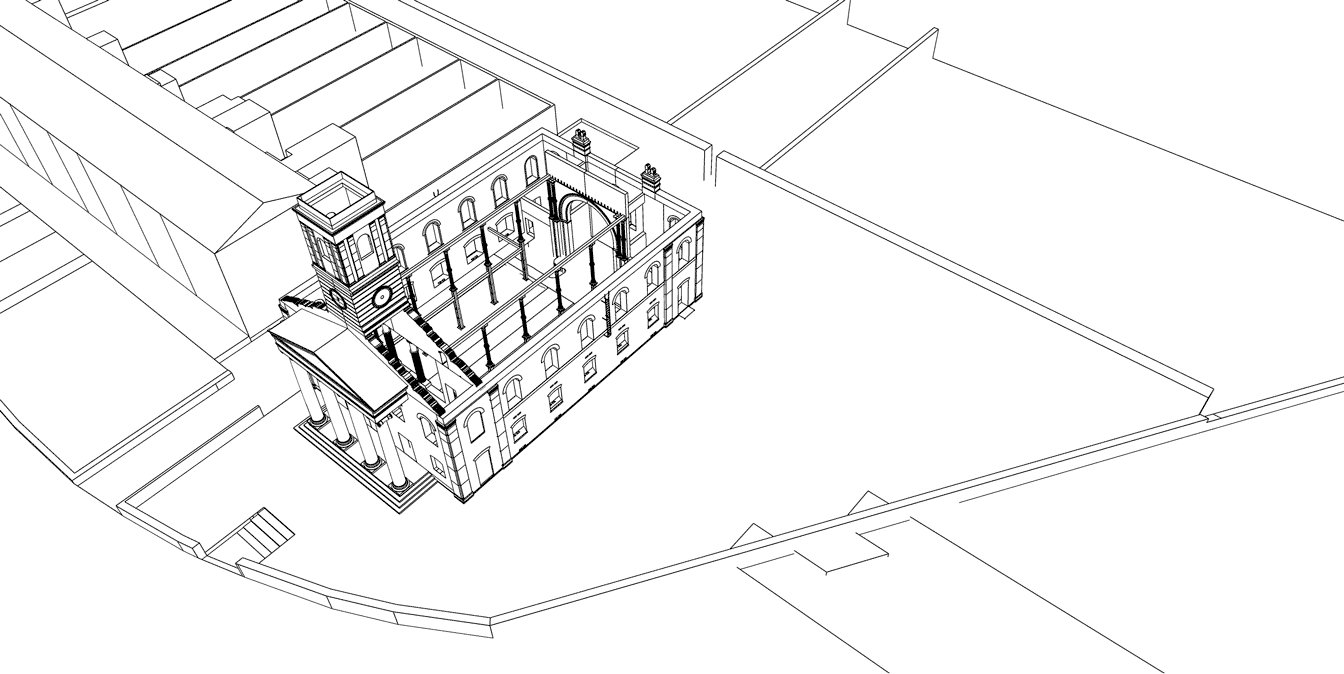 The dockyard church in Sheerness, Kent, had been ruined since 2001, enduring a series of fires that rendered it redundant and structurally unstable. For almost two decades the building was in a perilous condition, shored up with a mixture of temporary scaffold and the remnants of its original structural system. I interpreted the relationship of the existing building and the scaffolding structure as a harmonious relationship, with the old and the new supporting each other; in effect the layers of time had been woven together to form a new narrative in the life of the building. Based on the word ‘intersection’ the connections where the old and the new coexist interdependently, I initiated my project: to rework the building to once again become an intrinsic part of the island community.