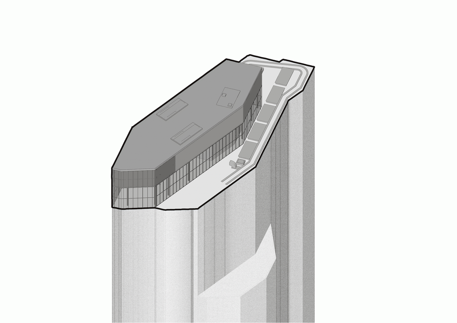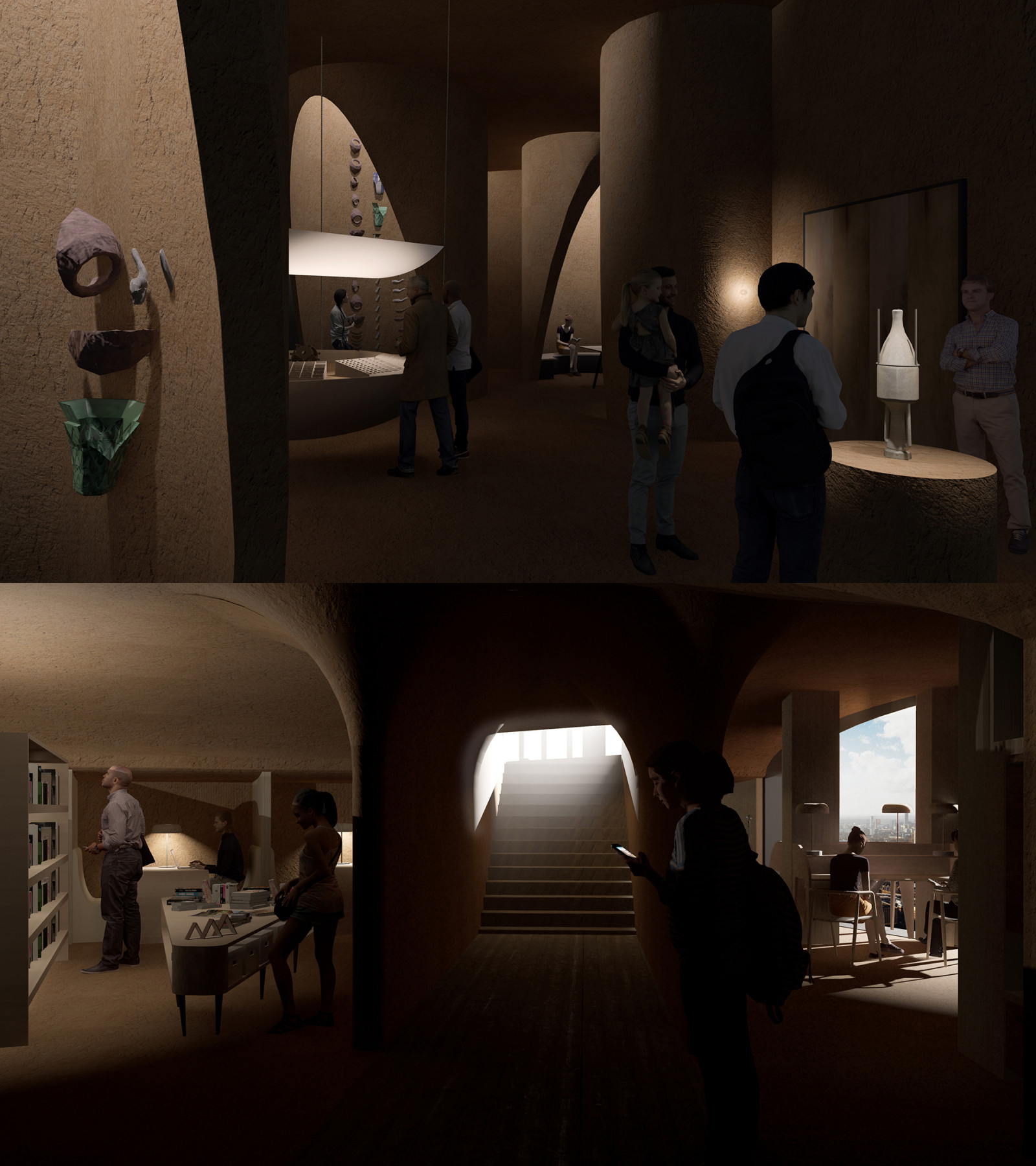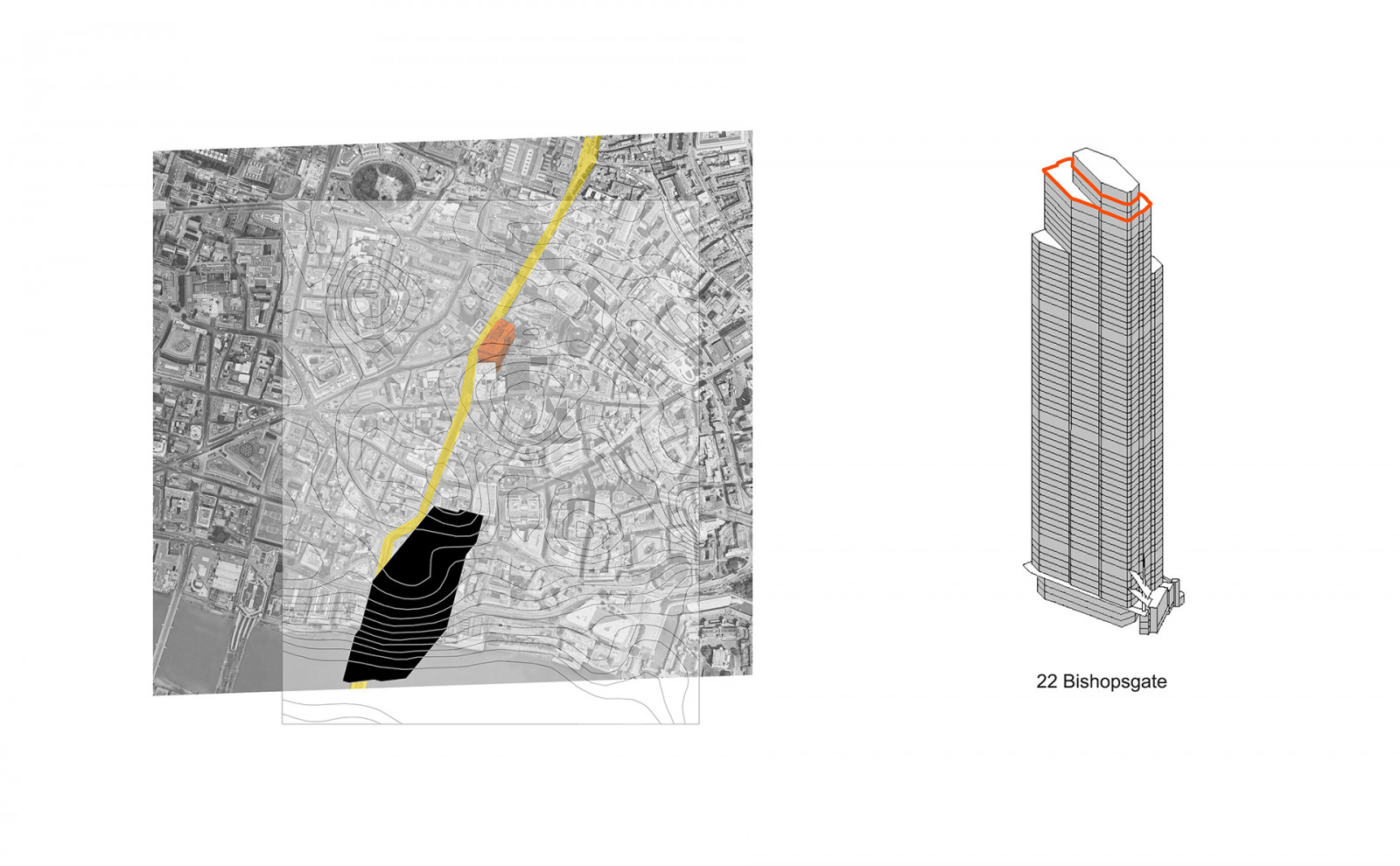The main space is an open Terrain on the top floor of the tower with spectacular views. Contrasting the confined public spaces of the City of London, the Terrain is open and allows people to move around freely. Its topography echoes the riverbank of Thames, which boosts London’s commercial trade and made the City of London great. Stripped of human intervention, the Terrain reveals the natural incline in the landscape as the City falls towards the river. This creates a tactile relationship between people and the land.