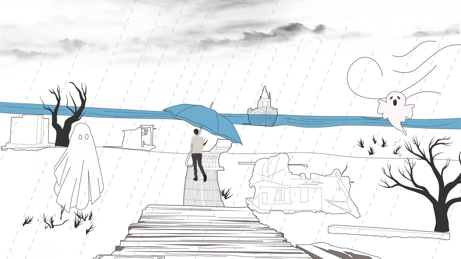 The user starts at an orientation point and then is guided through a series of designed environmental features to the beach and a fishing platform.