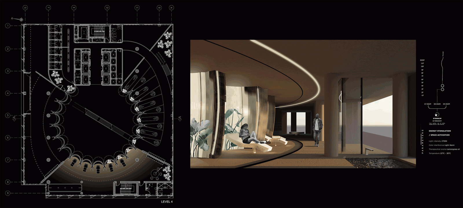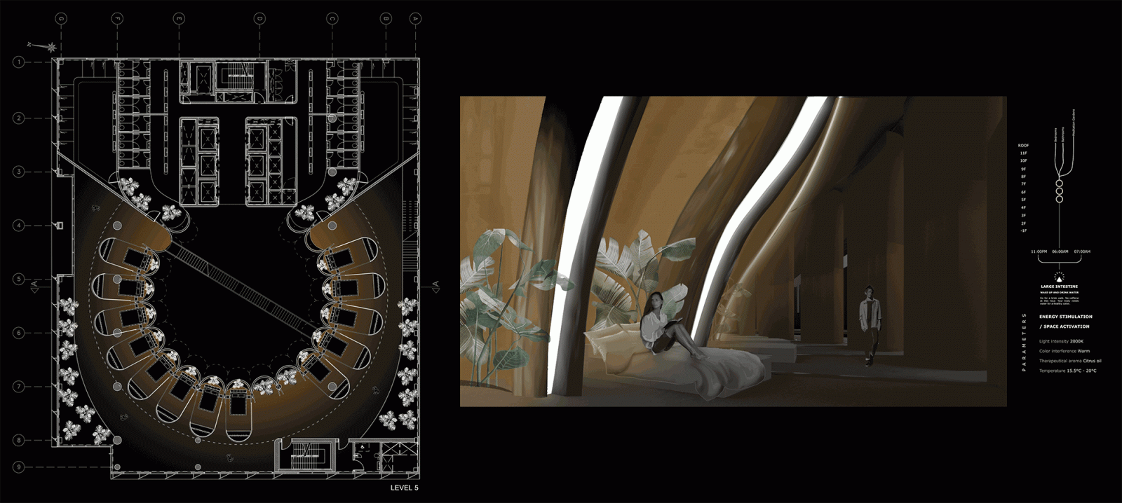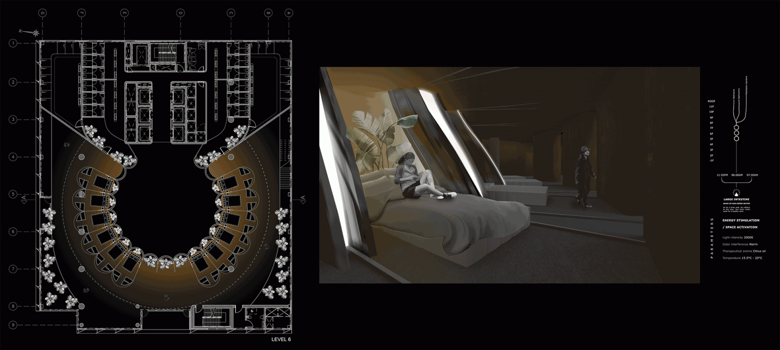 A group program that follows the optimal circadian rhythm cycle, where we would be immersed in a multi-sensory journey as we are recalibrated to our biological rhythm; The Experimental Circadian Hotel.