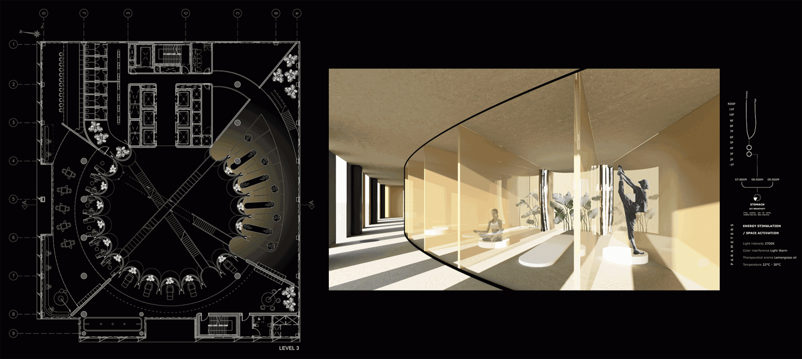 Our energy, how do we spend it?... and how do we create it? Why do we spend it that way? How could our body and mind react in a more positive way no matter what situation we find ourselves in? How could spatial design address this to improve it?