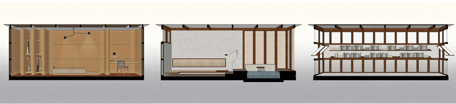 Author May Brawley Hill in his studies on American Summerhouses defines a Summerhouse as an escape from the inconvenience of summer heat. They are spaces that are meant to be retreat-like, relaxing and pleasing. More often than not they are humble, timber structures that are esoteric in nature – spaces dedicated to someone or something. Inspired by Author Mark Twain’s Summerhouse at Quarry Farm- a humble space for the author to write, unwind and think in solitude, my design proposal is a series of summerhouse interiors, each esoteric in nature, determined by the choice and use of material. Appropriate materials have been selected based on my material research and tool-kit.