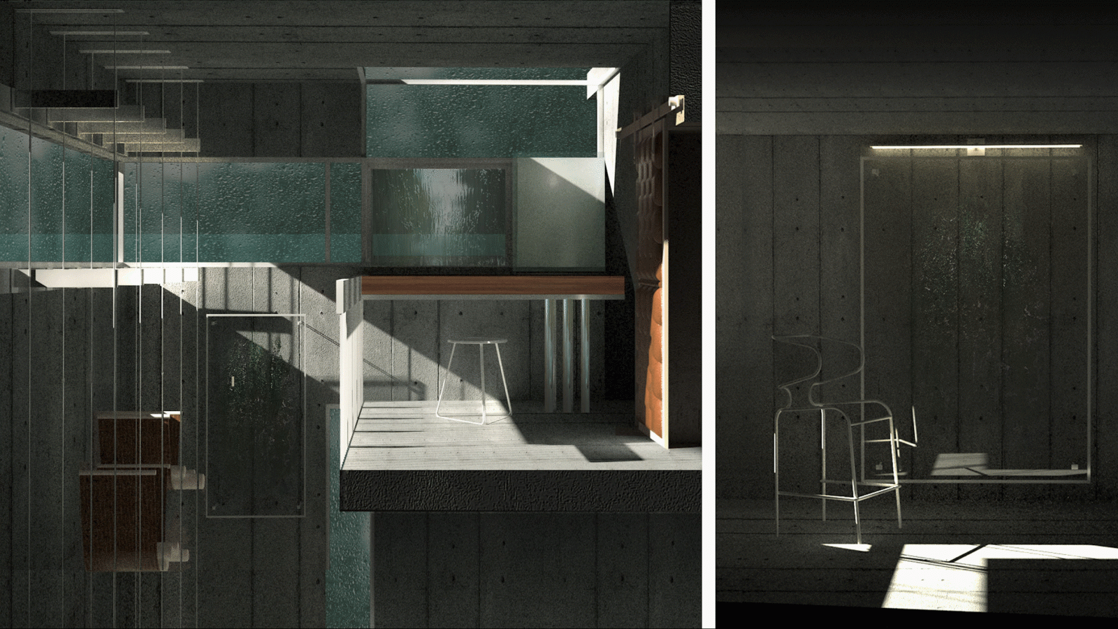 The design proposal located in Grain Fort Battery derives from the material investigation. The material usage focus on building a continuation between new and former residents. It allows for creating marks, signs, traces, and bruises. The new infrastructure merges episodes of temporary inhabitation creating a growing collective memory, gathering layers of inhabitation, overlapping events and stories. The proposed structure creates a sensation of existing in two realities: present existence in the retreat and Gilles Deleuze’s idea of virtual reality coming from conscious or subconscious acts of encoding the past. The space acts as a storage medium providing abstract evidence of the past which comes alive with every individual finding sense and meaning to it by understanding, imagining, and enriching the past.