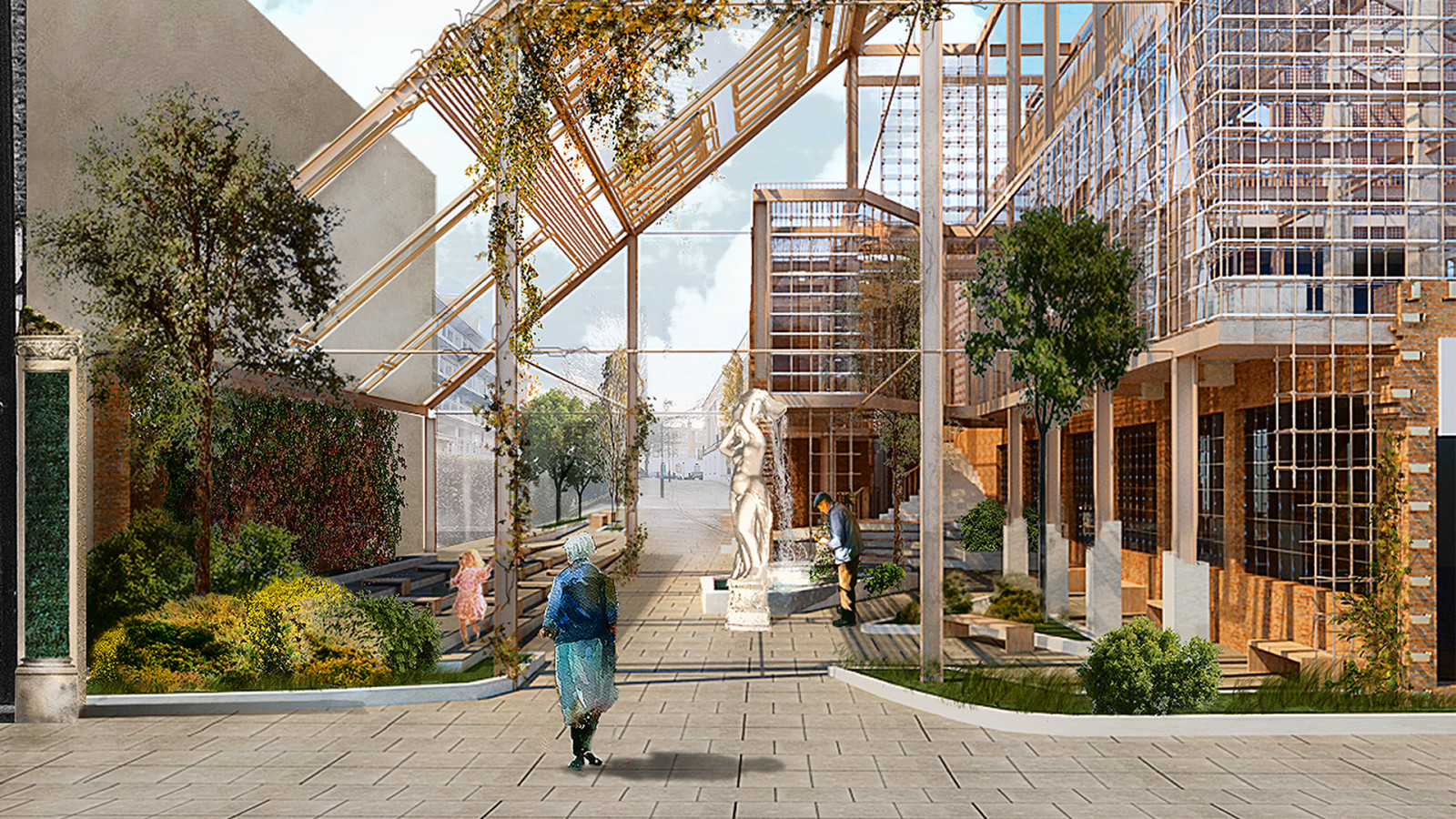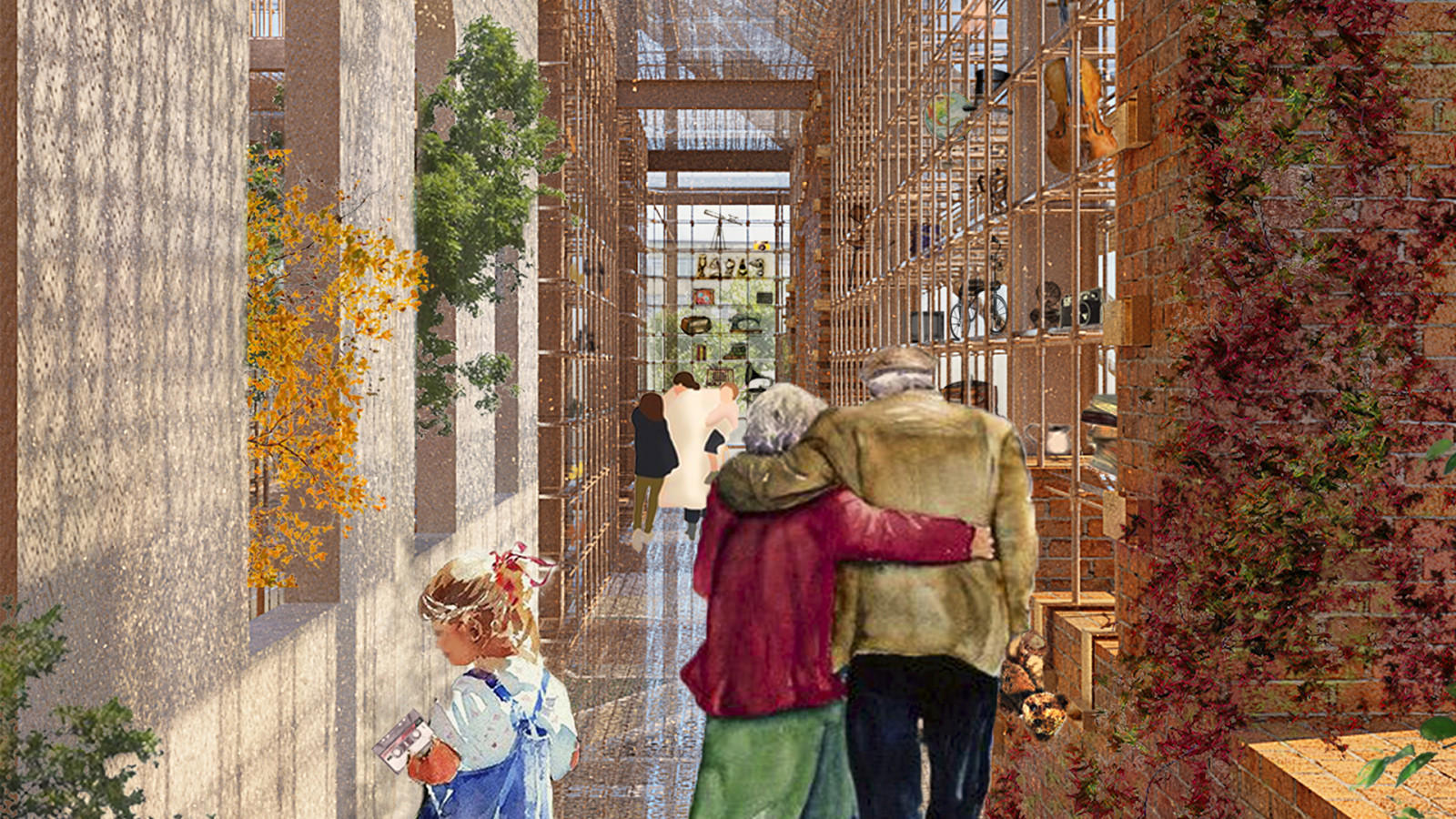 Past, present, and future are linked in the building, using the brick shell of a 1980s office/ retail development, and connecting it with the one remaining pilaster of a 19th-century music hall that was once on the site. The memory of the Bedford Theatre is echoed in a ‘ghost façade’ which provides shelter for a new public piazza, providing a quiet space set back from the narrow busy pavement of Camden High Street, and linking to a popular Chinese tea shop. A new grid-like structure for the display and storage of artefacts, is carefully integrated into the existing brick wall, which breaks down as if it were a ruin of the past life of retail. The upper floor of the Manearium hosts a light, airy café, and workshop where people can meet to discuss repairs and exchange.