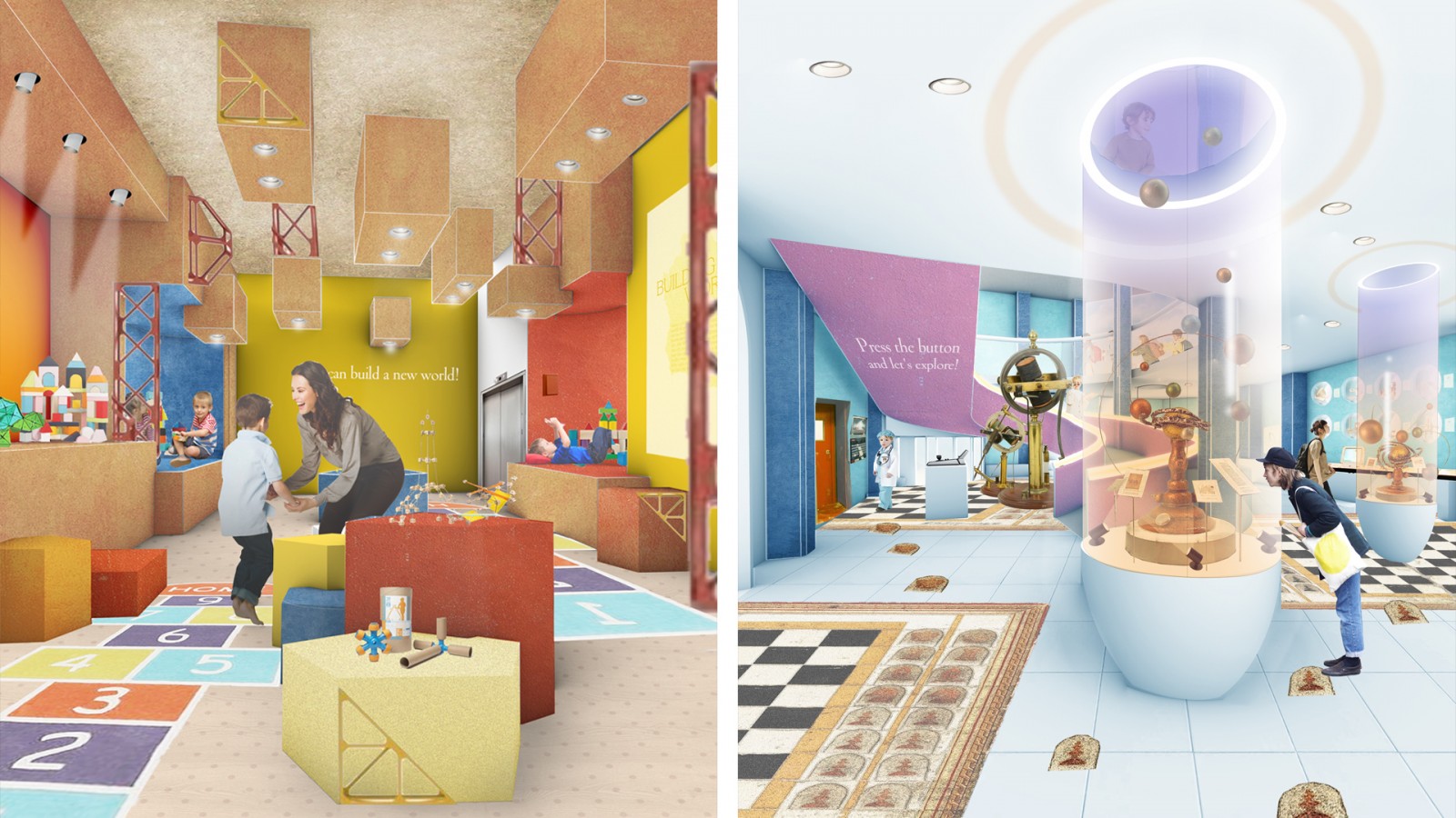 The building acts like a toy box, but also acts as a playable contraption in itself.