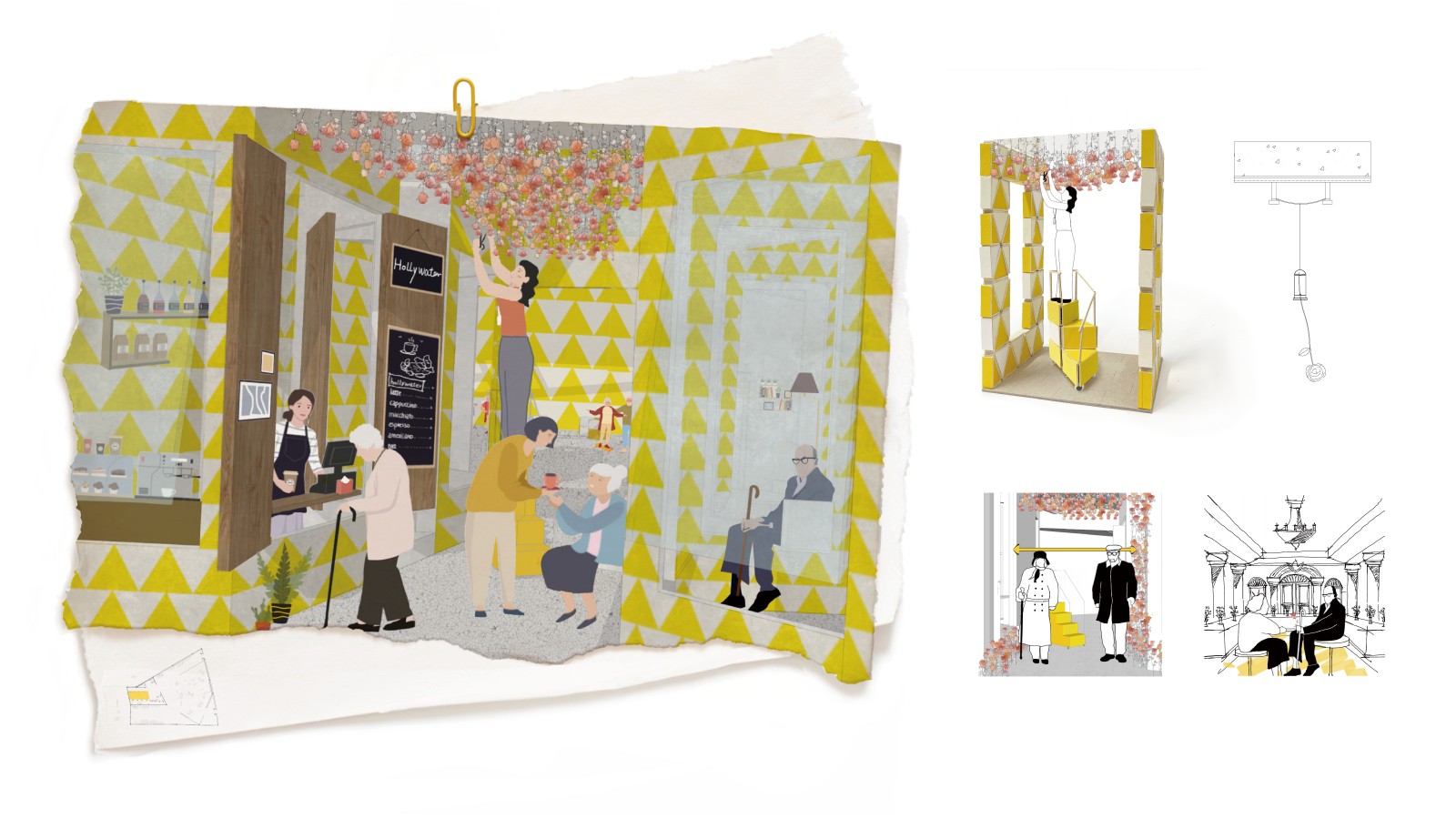 Longer lifespan should be something to celebrate. Instead, we persist in seeing population ageing as a demographic time bomb. In stark contrast to this thinking a new ballroom will be created at the Beacon centre, resurrecting lost social traditions from the past for courting and connecting with others. Music and dance unite people and bind us to memories and our history. Elderly people love to dance a lot, because it reminds them of the good moments of their lives. Inspired by coastal Ballroom interiors, the new space aims to facilitate affection in elderly individuals, allow older people to move freely and dance together with the support required and foster a feeling of youthful independence.