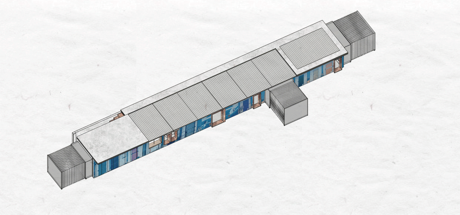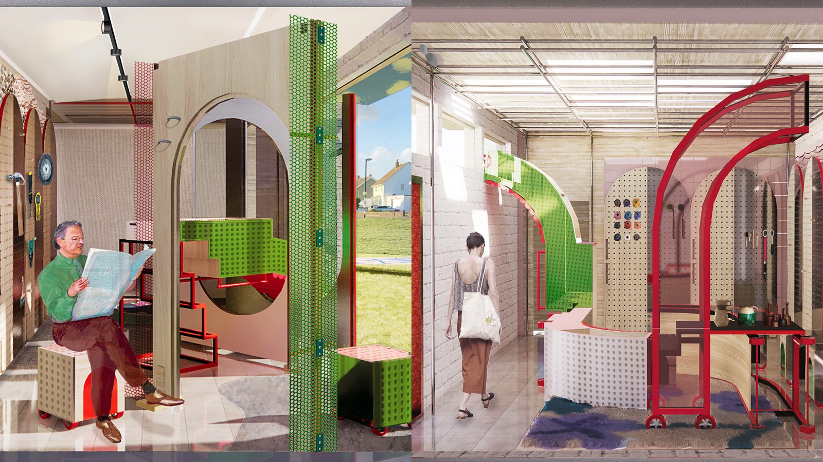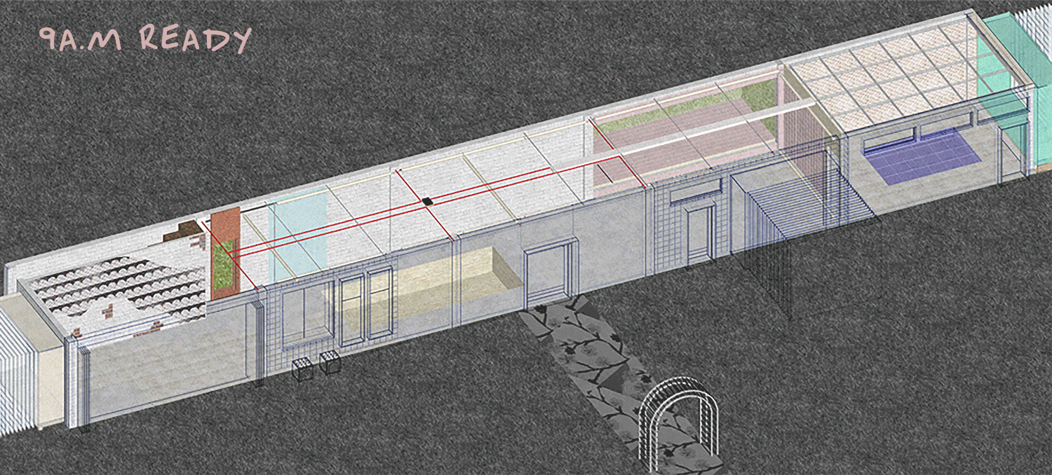 Makeup is a quick, easy and ever-changing process which i am interested in. So my project focuses on answering the question: Can space be as versatile as make up? The answer is the flexibility of space structure and movable module to achieve more versatility and quick change. The project focuses on three objectives. Firstly, fast turn around. Meet the space needs of Shoreham residents. During the epidemic, lovers in many fields such as food, clothing, handicrafts, etc., have reflected the need for "rent-by-the-hour" space, where they can exchange their works and achievements in a comfortable atmosphere without having to undertake monthly Expensive rent or other risks. The second, less materials waste. Movable modules will perform different functions according to different placement methods, and can be repeatedly used. Finally, all the mobile modules can be nested together and stored in a square box to reduce the space occupation. I hope that through my design, I can increase the vitality of this small town and stimulate their creativity and cohesion.
